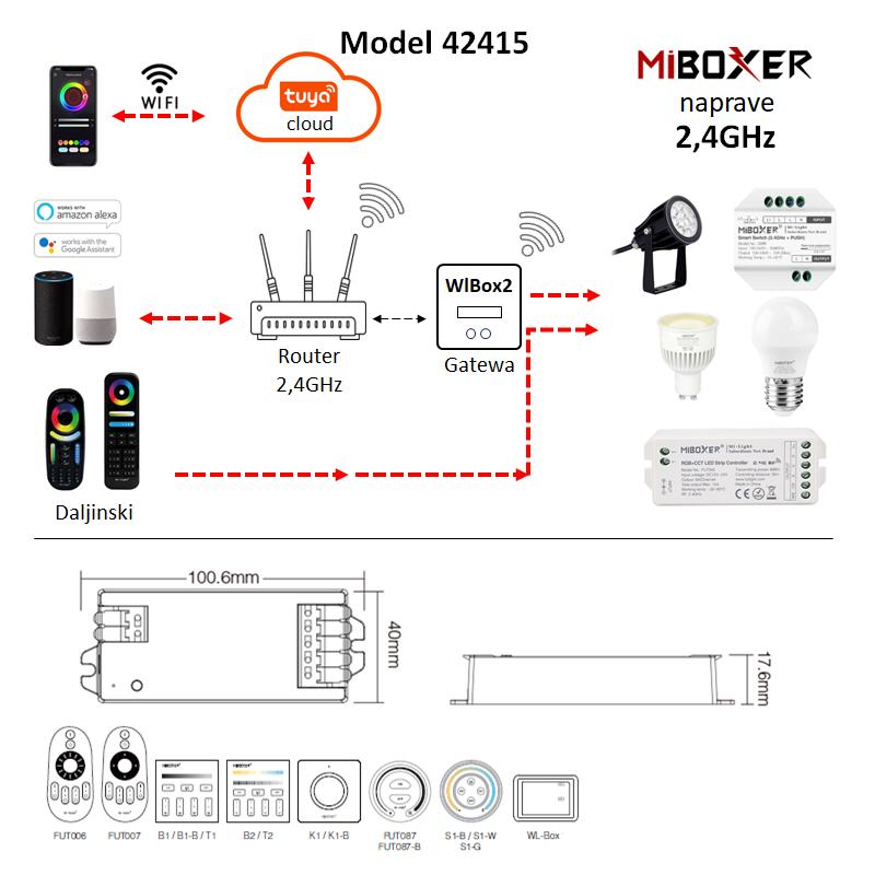 2.4GHz Gateway - prehod združljiv z izdelki serije MiBoxer 2,4 GHz RF. MiBoxer WL-Box2 2,4 GHz omogo..