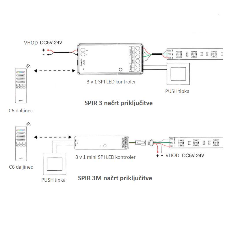 LED krmilnik 3v1 5-24V 10A SPI DIMM/RGB/RGBW SPIR3 RF 2,4GHz