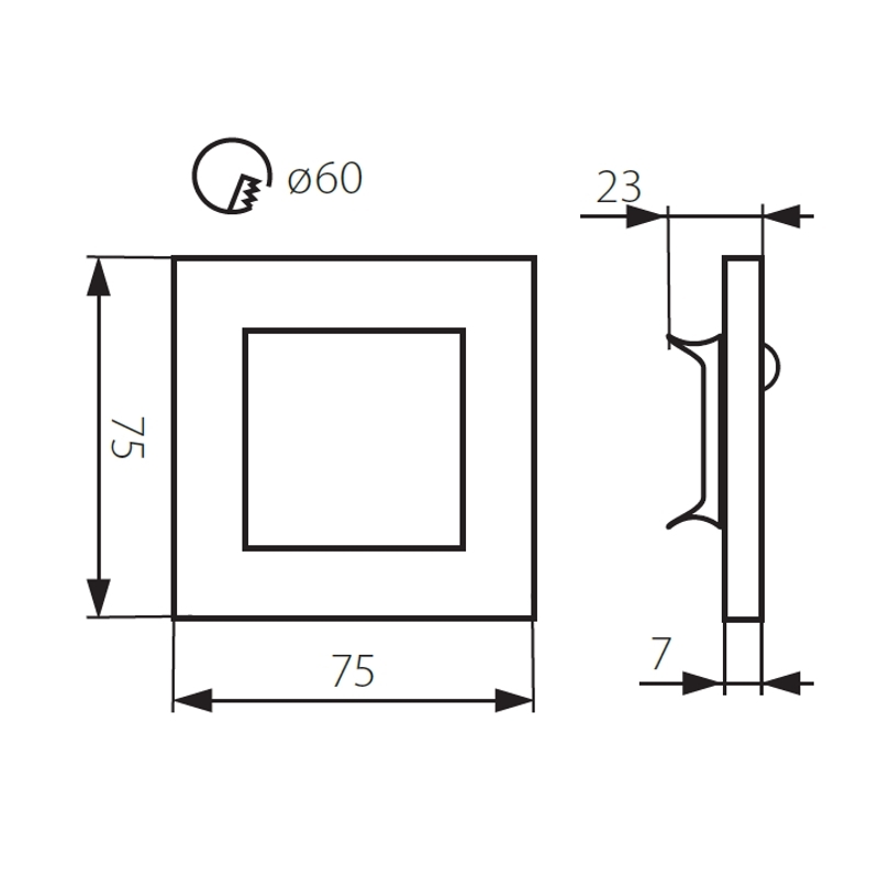 Vgradna LED svetilka z vgrajenim senzorjem gibanja, moderne oblike in majhne velikosti, namenjena označevanju stopnic in hodnikov. Za delovanje potrebuje pretvornik, lahko tudi en pretvornik za več svetilk. Vgradnja v klasične doze fi 60mm. Deluje kot samostojna svetilka s senzorjem, lahko pa na njo povežemo več svetilk istega modela brez senzorja (do 5 kosov).